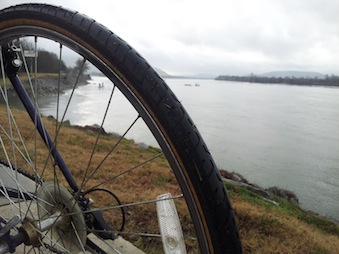 My freshly filled tires were part of the river scene during my ride Saturday. It was the first bike ride this runner had taken in nearly two years.